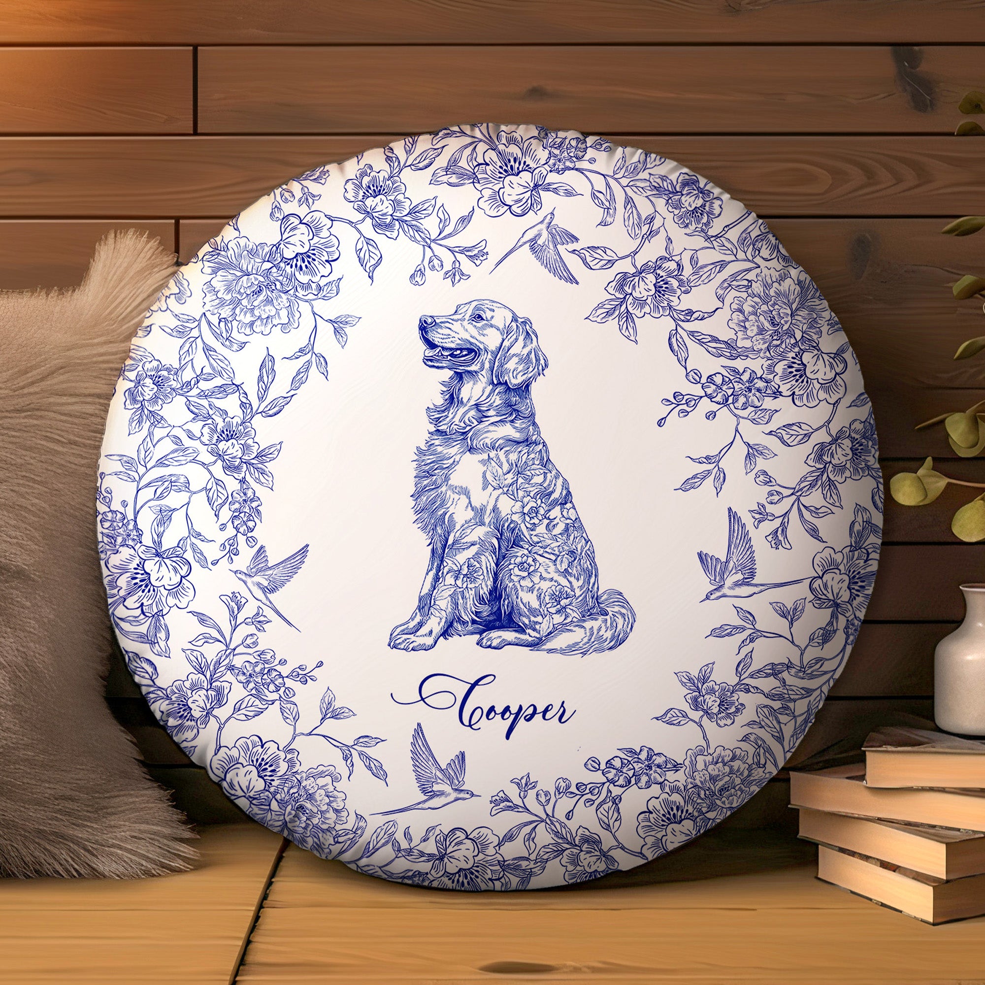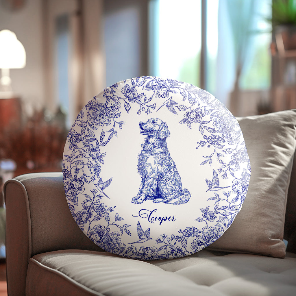 Toile De Jouy Dog Breeds Custom Chinoiserie Style – Personalized Round Pillow