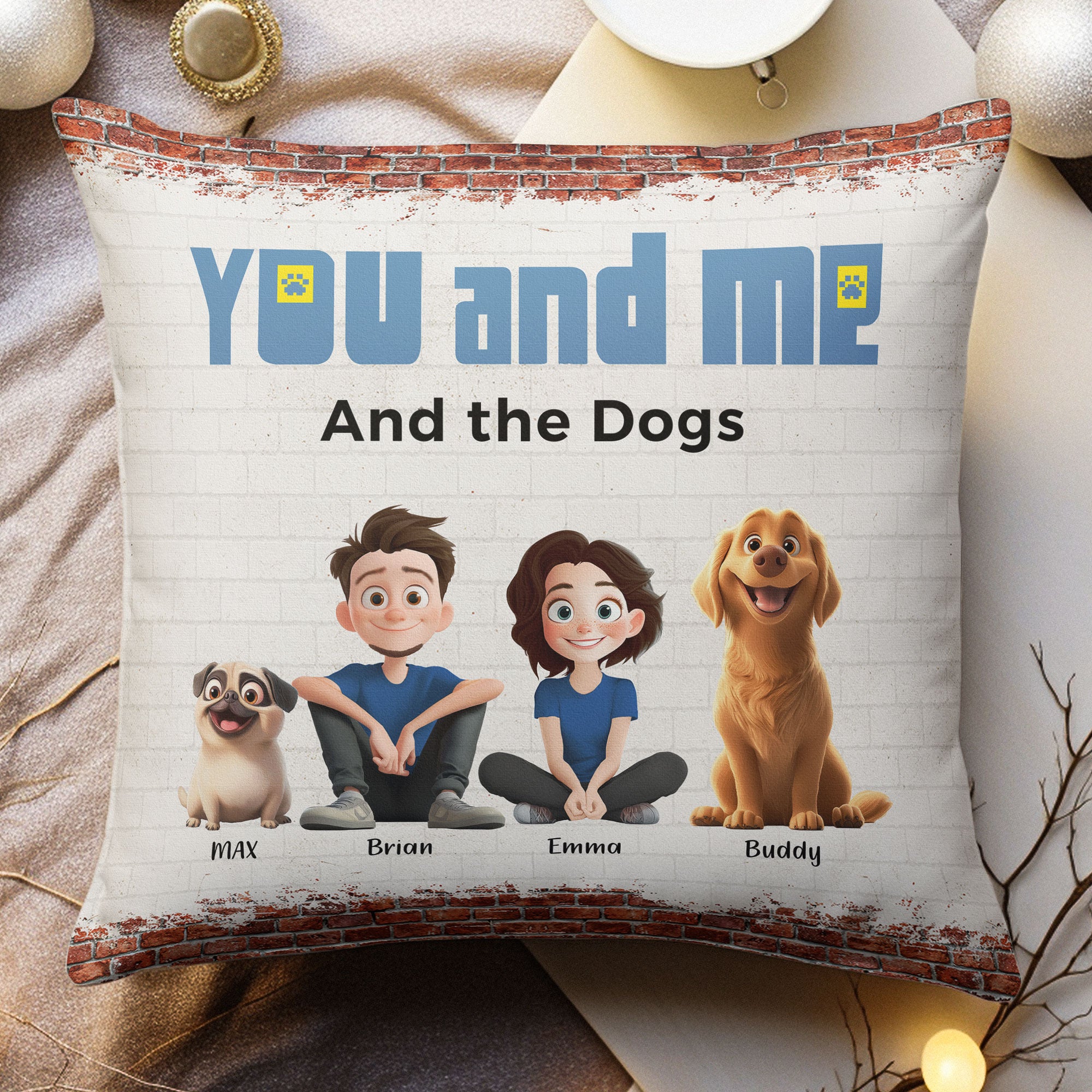 You, Me & The Dogs – Personalized Pillow (Insert Included)